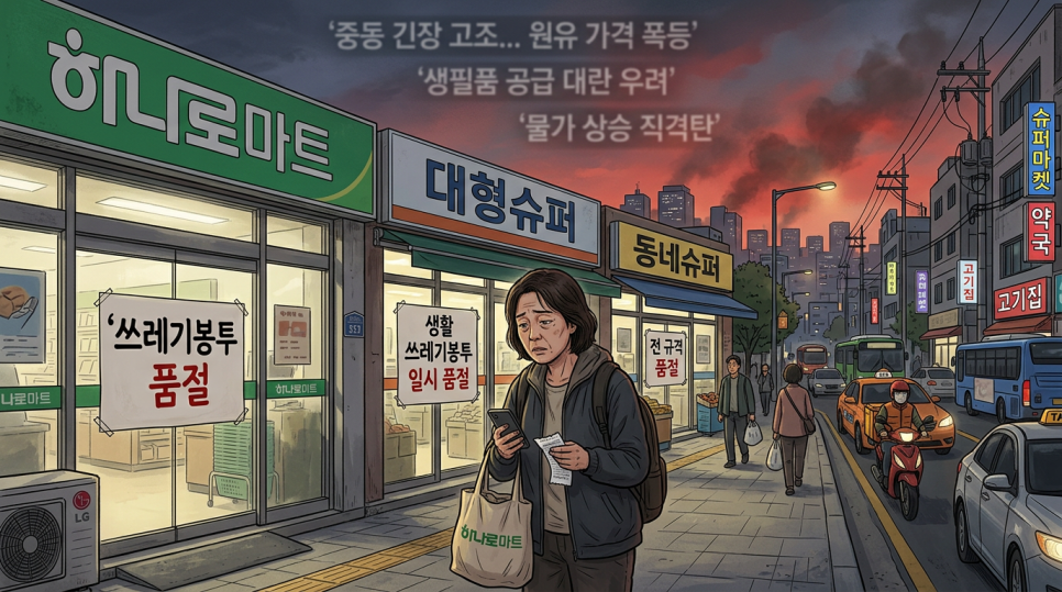 "쓰레기봉투 한 장 사려고 마트 세 군데 돌았습니다" — 중동 전쟁이 우리 동네까지 온 순간